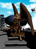 | (not common knowledge outside Babel and religious circles) One of the Sabaoth Seven, and also accepted as one of the original Sabaoth Six -- demon-warriors bound to the service of the ruler of Ashdod as well as the Seven Sisters. Skekos is depicted as a mutant Eeee with skedat-like features, including a chitinous black body and smooth, featureless faith, with sharp spines protruding all over, and segmented barbed whips extending from each forearm. Skekos is sometimes associated with Sunala in tales that attempt to tie the Sabaoth Seven to the Seven Sisters, but skedats are not particularly sacred to Sunala. Like a skedat, Skekos tends to charge blindly at an opponent, hoping to impale the foe upon his spikes, and to flail with his barbed whips. | ||