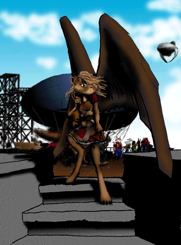 The Solus live a settled agrarian lifestyle, mostly Soultown, a central "village" of about 5000 individuals, which is built into and out of an extremely large mountain. Access in and out is typically by flight, or by the single pathway. Smaller groupings of Solus live on the surrounding slopes, in small villages built into the gigantic trees that dot the landscape. The Solus average 5'5 to 6'0. Physically they resemble a cross between an anthropoid feline and a hawk. Their skeletal and muscular structure supports their usable arms and strong wings, making them capable of short flights. The Solus are not capable of long distance flying or of carrying much weight while flying. They can carry their body weight plus a maximum of 50 lbs. The better flyers are more agile, can fly farther, and with heavier cargo. Solus arms end in five prehensile digits which have soft pads rather than claws. Their feet are non-prehensile with digits that have retractable claws. The Solus have average physical compared to other races. They are long lived: 120 cycles is average. Their fur is short overall, except on their heads, where it is often worn long. Fur colors range from light to dark brown to golden. Wings are covered with large feathers over a softer downy layer of feathers. Wing colors are typically pure white and are considered ceremonially important. Other colors are regarded as bad omens by the Solus and result in exposure (abandonment) of the young to Nature by the group. The Solus view this as handing the infant's fate over to the First Ones. Some cast out Solus have survived through the kindness of strangers, and others are rumored to be held in thrall by other races. Only a rare few (to date in Solus history: 4) have returned to Soultown, the racial capital. These are regarded with suspicion. Eye colors vary, and are commonly green or yellow. Purple and dark blue are the most favored, being regarded as gifts from the First Ones. Solus have long prehensile tails which are kept curled close to their bodies. Exactly how they reproduce is unknown, but their genetic system is highly adaptable and they have been know to mate cross species. This phenomena is extremely rare and viewed with neutrality by the Solus. The Solus are a hearty people, not usually susceptible to disease. However, they do get a form of mites in their wings which incapacitate or even kill them. Solus culture is structured around the ke'nai, a medium sized animal that resembles a llama. The ke'nai appear to be long lived, though their lifespan is not clearly known. The oldest live to about 60 cycles. The ke'nai represent a source of food for the Solus, as they are edible and the females provide a heavy milk. The animals represent wealth for the Solus, and an indicator of status, for all ke'nai are considered gifts from the First Ones. It is no secret that the Solus are obsessive and ruthless in their pursuit of the ke'nai, even stealing the animals from each other. Status is partially based on herd size, and partially on the blood lines of the ke'nai. The Solus maintain strict records of all ke'nai births, deaths and matings. In fact, there is an entire occupation devoted to ke'nai bloodlines. To possess the best bloodlines indicates very high status. Ke'nai strength and intelligence is excellent. The animals are jealously guarded by the Solus, and the unsanctioned killing of a ke'nai is an offense punishable by death. Every Solus is given their first ke'nai at birth, and this animal takes a unique place in the Solus's heart. It forms the basis for their herd, and is in some senses a partner. Though the ke'nai can not speak, it is possible they can understand mental thought. The Solus culture focuses on Soultown and the ke'nai. The Solus show little interest in the outside world, though individuals will freely trade for goods, information or technology if they think it will help them aquire more ke'nai. Ke'nai meat and milk is not as highly valued outside the Solus culture, though many view ke'nai products as tasty. The Solus very reluctantly trade live ke'nai with outsiders, and only slightly less reluctantly will trade meat, milk and cheese products. The Solus will readily trade ke'nai wool in any form (spun, unspun, woven, unwoven) and are well known for the wool and quality weaving. In addition to being weavers, Solus also trade their services as messengers and occasionally, warriors to those who require such services. Such a situation is almost always temporary. Solus under permanent employ are rare. The Solus are devious, trusting no one but their immediate family members -- their "birth clan." The Solus are of above average intelligence and they often use it against the unwary if given the chance. However, for the most part, Solus do not seek out such opportunities. Solus who migrate to the cities are uncommon. Once in the cities, the Solus undergo a drastic lifestyle change as the ke'nai do not survive long outside their native valley. Thus, a city dwelling Solus must find something to replace the ke'nai in their hearts and souls. This is usually not beneficial to the Solus in question as they become obsessed with such things as: chocolate, caffeine, gold, individuals of other races, plants, stones... almost anything to fill the gap. Some Solus have been known to obsess on poisonous animals or plants! PC and NPC Notes for the Solus: A Solus character in the city can take a -1 disadvantage as a result of leaving home culture (with obsessions as above). A Solus must have at least average flying capability (4 points). | ||