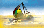 These sand-boats are the common means of transportation for the scavenger race known as the Nohbakim. Given the scarcity of wood to be found in the desert, and means of making cloth, the sails are typically made of patched- together hides, while the structure is made of a mish-mash collection of scavenged materials, including bones of large desert creatures. Smaller versions of the triremes are known as "Kooshkie Sleds", relying on propulsion by teams of Kooshkies instead of sails.