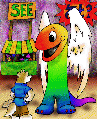 [405 x 499] 138406 bytes, 6/3/2018 Envoy, wearing a Cris Creen costume and advertising a theme park in Safar, has to contend with a troublesome Gallah pup. by Jordan Greywolf - Edit entry | |