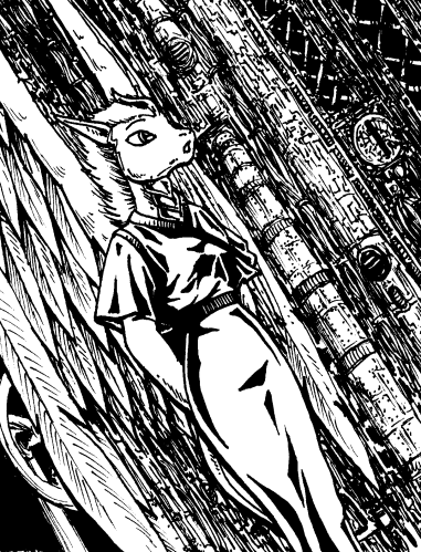 [333 x 500] 50728 bytes, 6/3/2018 Some Eeps are startled by the presence of Chiaroscuro, in the Ashdodite wilderness. by Jordan Greywolf - Edit entry | |